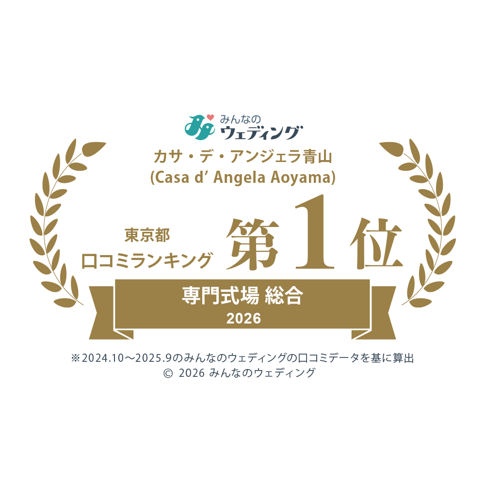【2026年みんなのウェディング口コミランキング 東京都 専門式場 総合1位受賞】